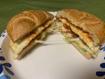 The Guacie: 2 Fried Eggs, Bacon, Swiss and Avocado with Sriracha Sauce on Roll $9.50